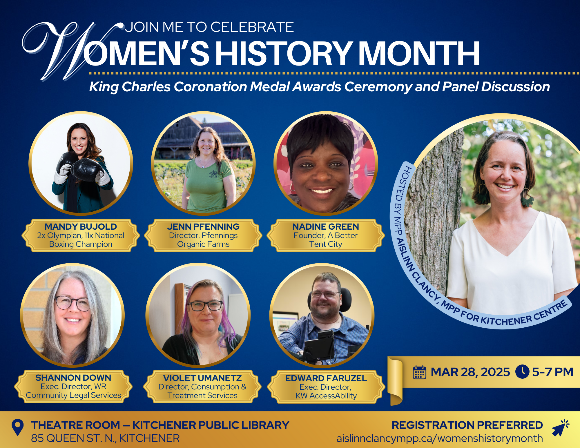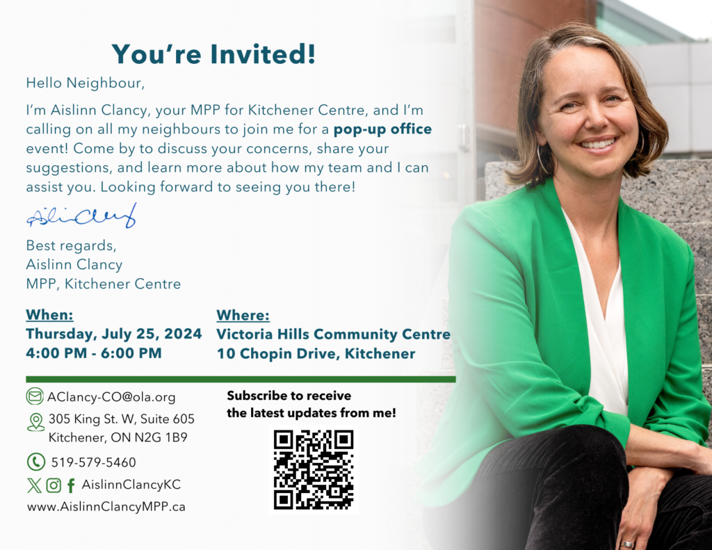 Friday, May 3, 2024 – 4:30 to 5:30pm. @ 305 King Street West, suite 605, Kitchener. I am excited to be hosting a community town hall to discuss Bill 166 and how I have been advocating to prevent political interference in our colleges and universities. Come join the discussion.