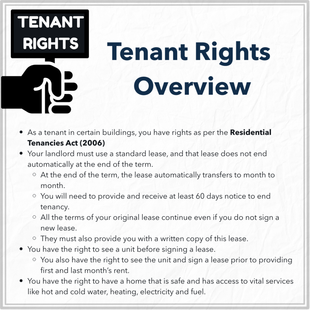 Housing Toolbox Resources Waterloo Region Community Legal Services – https://www.wrcls.ca/tenant-issues/ Residential Tenancies Act (2006) – https://www.ontario.ca/laws/statute/06r17